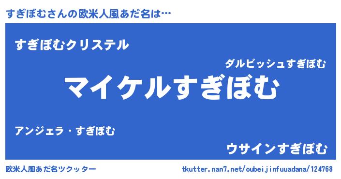| 男性向けラノベタイトル風あだ名 | 『スギボムアートオンライン』 |