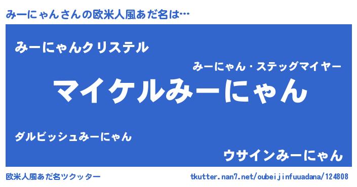 | 男性向けラノベタイトル風あだ名 | 『みーにゃんの憂鬱』 |
