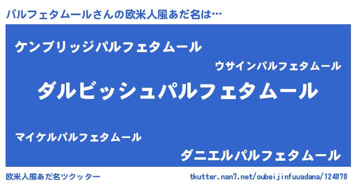 | 男性向けラノベタイトル風あだ名 | 『パルフェタムールという概念が存在しない退屈な世界 』 |