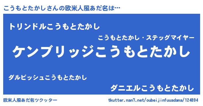 | 男性向けラノベタイトル風あだ名 | 『魔法科高校のこうもとたかし』 |