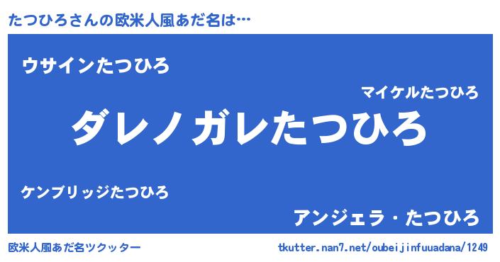 | 男性向けラノベタイトル風あだ名 | 『この素晴らしい世界にたつひろを!』 |