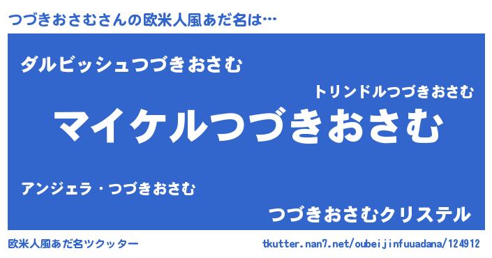 | 男性向けラノベタイトル風あだ名 | 『ツヅキオサムアートオンライン』 |