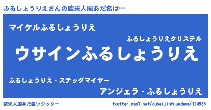 | 男性向けラノベタイトル風あだ名 | 『ふるしょうりえの嫁は女の子じゃないと思った?』 |