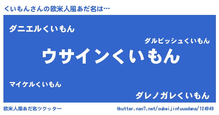 | 男性向けラノベタイトル風あだ名 | 『くいもんの嫁は女の子じゃないと思った?』 |