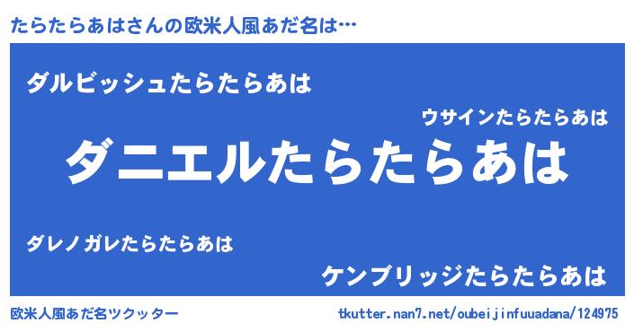 | ヘコむあだ名 | 『たらたらあは(爆)』『たらを』 |