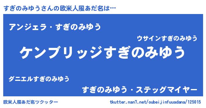| 男性向けラノベタイトル風あだ名 | 『魔法科高校のすぎのみゆう』 |
