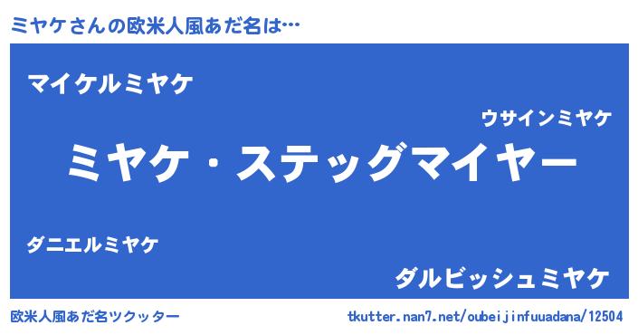 | ヘコむあだ名 | 『ミヤにゅー』『ミヤケ(笑)』 |