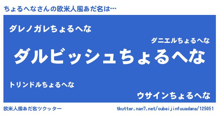 | 男性向けラノベタイトル風あだ名 | 『ちょるへなという概念が存在しない退屈な世界 』 |