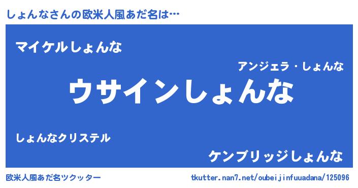 | 女子向けラノベタイトル風あだ名 | 『しょんなの卵を拾いまして』 |