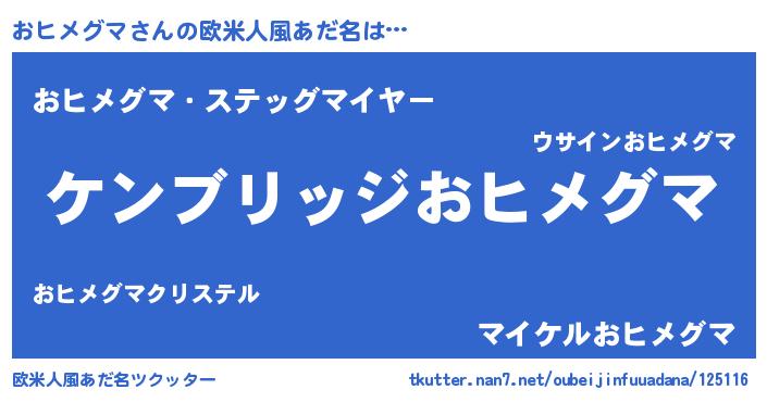 | 女子向けラノベタイトル風あだ名 | 『おヒメグマなんてお断りですっ。』 |
