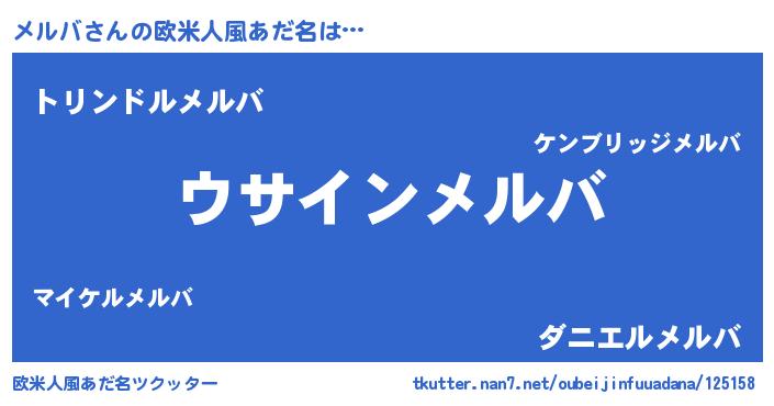 男性向けラノベタイトル風あだ名 | 『メルバの嫁は女の子じゃないと思った?』 |