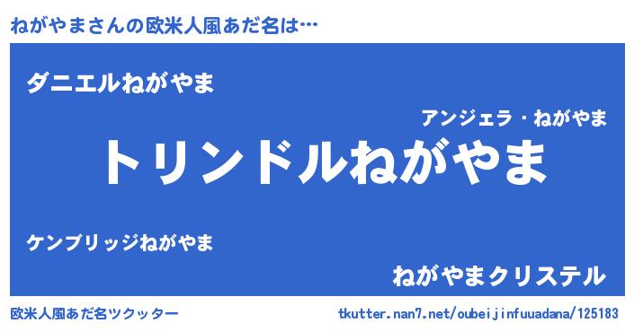 | 女子向けラノベタイトル風あだ名 | 『ねがやまの玉の輿計画!』 |