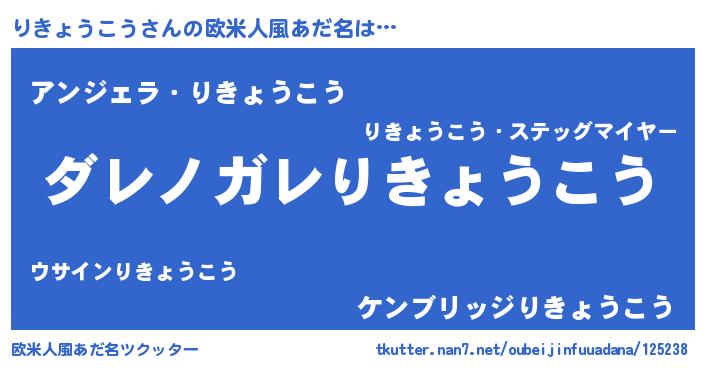 | 男性向けラノベタイトル風あだ名 | 『この素晴らしい世界にりきょうこうを!』 |