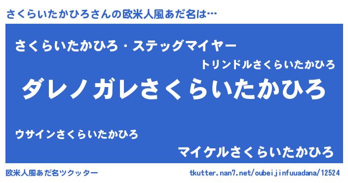 | 女子向けラノベタイトル風あだ名 | 『さくらいたかひろが死なない童話 林檎のさくらいたかひろの診療簿』 |