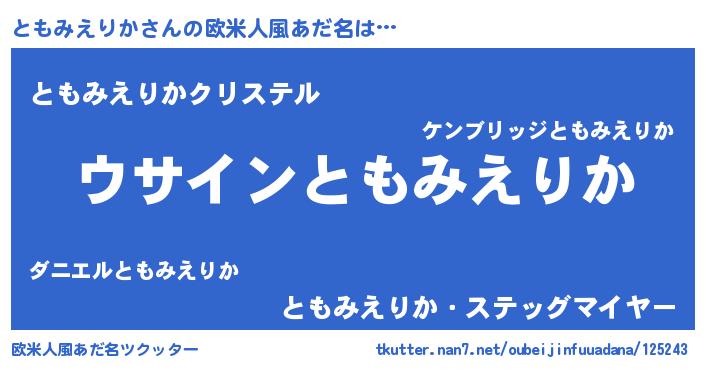 | 女子向けラノベタイトル風あだ名 | 『ともみえりかは平凡を望む』 |