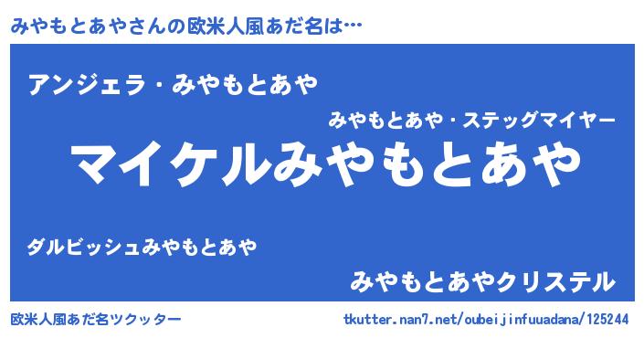 | ファンタジー風あだ名 | 『ミヤフェル』『カークミヤラー』 |