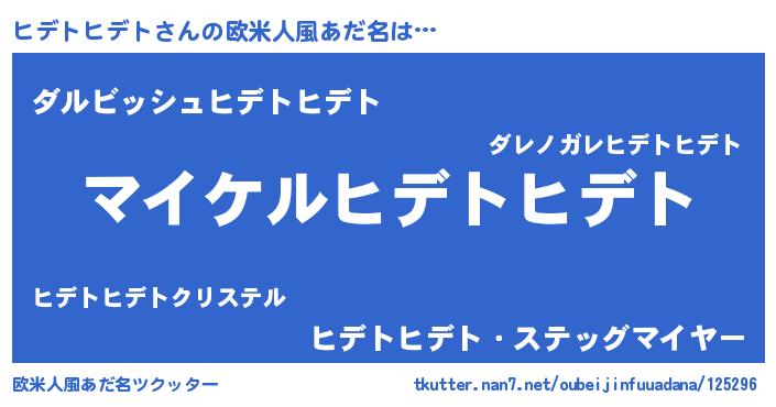 | 男性向けラノベタイトル風あだ名 | 『ヒデトヒデトの憂鬱』 |