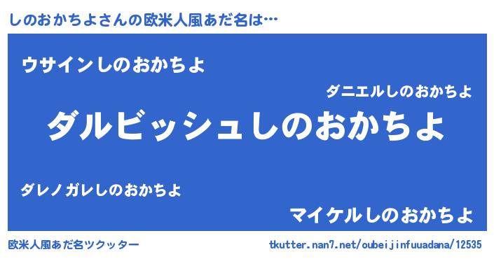 | 男性向けラノベタイトル風あだ名 | 『しのおかちよという概念が存在しない退屈な世界 』 |