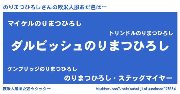 | 男性向けラノベタイトル風あだ名 | 『のりまつひろしという概念が存在しない退屈な世界 』 |