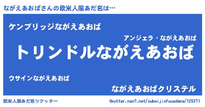 | 女子向けラノベタイトル風あだ名 | 『ながえあおばの玉の輿計画!』 |