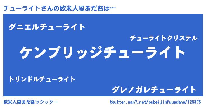 | 男性向けラノベタイトル風あだ名 | 『Re:チューライトから始める異世界生活』 |