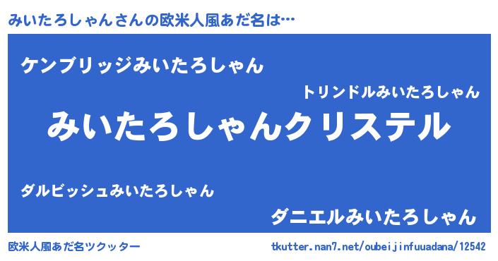 | 意味不明あだ名 | 『みいたろしゃんフォーエバー』 |