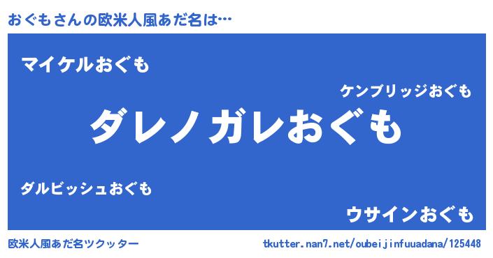 | 男性向けラノベタイトル風あだ名 | 『この素晴らしい世界におぐもを!』 |
