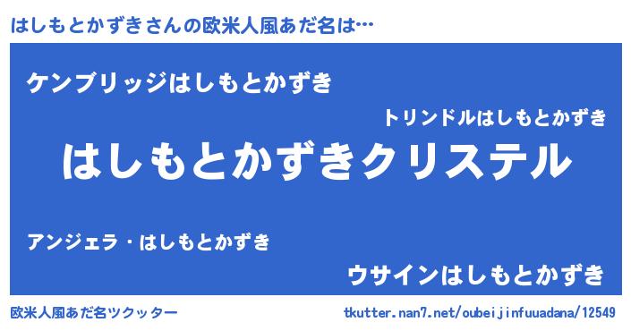 | 女子向けラノベタイトル風あだ名 | 『はしもとかずきの雑貨屋さん』 |