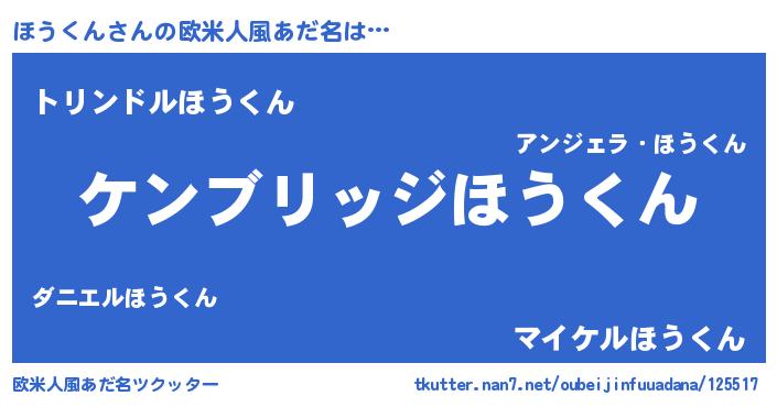 | 男性向けラノベタイトル風あだ名 | 『Re:ほうくんから始める異世界生活』 |
