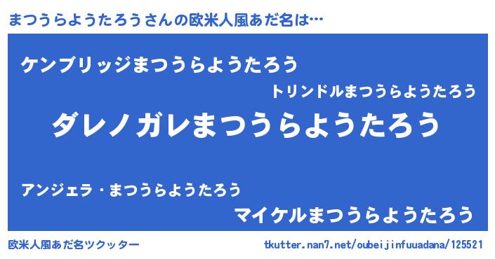 | 女子向けラノベタイトル風あだ名 | 『乙女ゲームの破滅フラグしかない悪役まつうらようたろうに転生してしまった…』 |