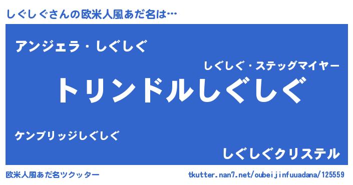| 男性向けラノベタイトル風あだ名 | 『しぐしぐ~年齢イコール彼女いない歴の魔法使い~』 |