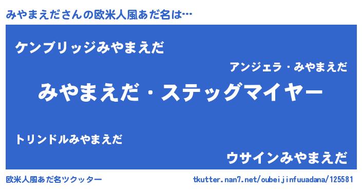 | ヒーロー風カッコイイあだ名 | 『最強戦士ミヤマエダ』『銀牙騎士ミヤ』 |