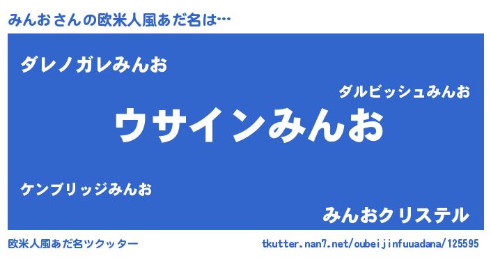 | 男性向けラノベタイトル風あだ名 | 『みんおの嫁は女の子じゃないと思った?』 |