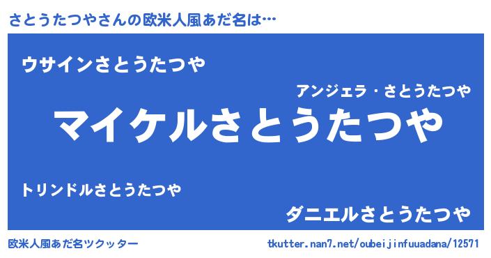 | 男性向けラノベタイトル風あだ名 | 『サトウタツヤアートオンライン』 |