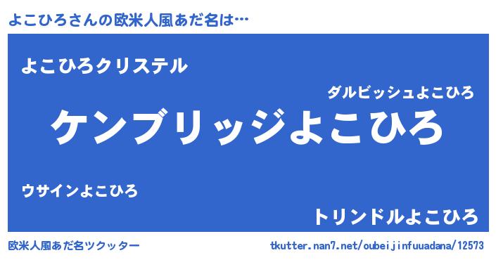 | 男性向けラノベタイトル風あだ名 | 『Re:よこひろから始める異世界生活』 |