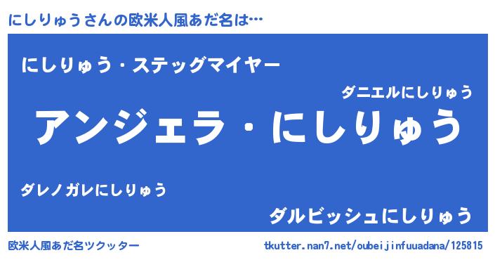 | ヒーロー風カッコイイあだ名 | 『ネオニシリュウ』『愛の使者にしりゅう』 |