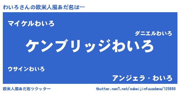 | ヒーロー風カッコイイあだ名 | 『ウルトラ戦士ワイロ』『スーパーワイロ』 |