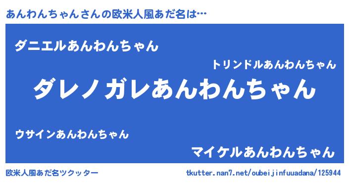 | 胡散臭い通販商品みたいなあだ名 | 『あなたにだけ特別に提供する世界で10本だけ現存している希少なブランデー…その名も「あんわんちゃん」』 |