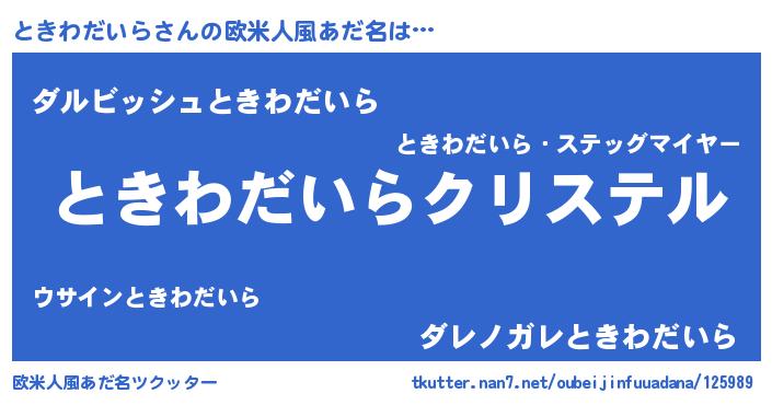 | ポケモン風あだ名 | 『トキワダネ』『ゼニトキ』 |