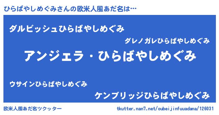 | ヘコむあだ名 | 『ひらばやしめぐみ(笑)』『ひらを』 |