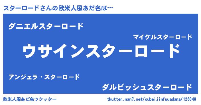 | 男性向けラノベタイトル風あだ名 | 『スターロードの嫁は女の子じゃないと思った?』 |