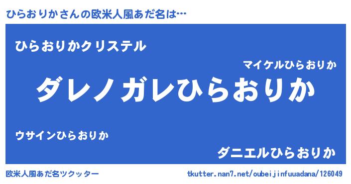 | 男性向けラノベタイトル風あだ名 | 『この素晴らしい世界にひらおりかを!』 |