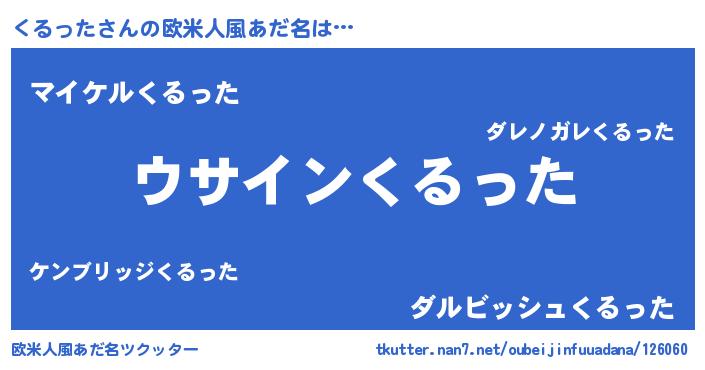 | 男性向けラノベタイトル風あだ名 | 『くるったの嫁は女の子じゃないと思った?』 |