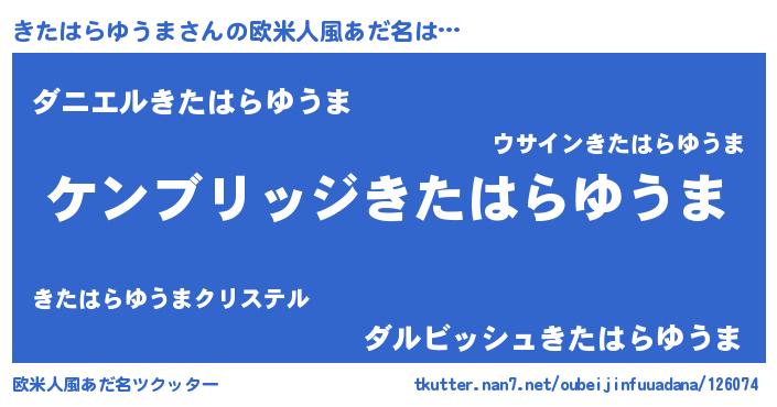 | 女子向けラノベタイトル風あだ名 | 『きたはらゆうまストレイドッグス』 |