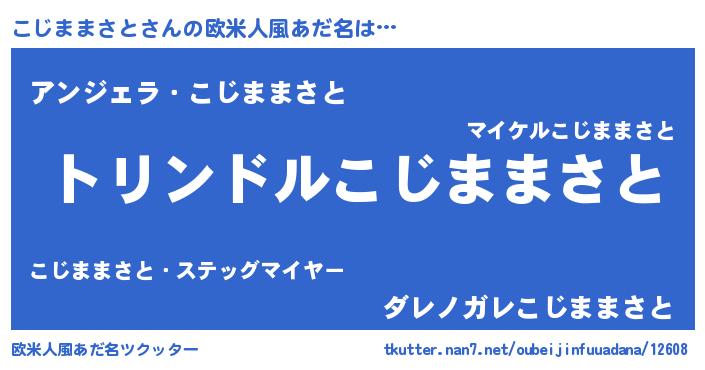 | 男性向けラノベタイトル風あだ名 | 『こじままさと~年齢イコール彼女いない歴の魔法使い~』 |