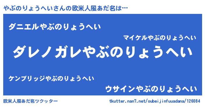 | 女子向けラノベタイトル風あだ名 | 『悪役やぶのりょうへいに転生したようですが、知った事ではありません』 |
