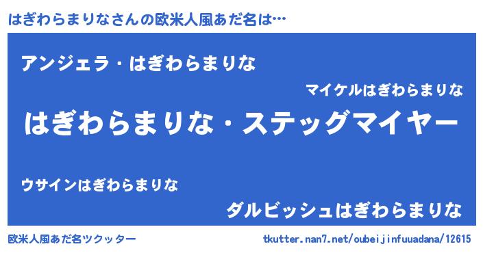 | 胡散臭い通販商品みたいなあだ名 | 『来世でも幸せになれる健康食品…その名も「はぎわらまりな」』 |