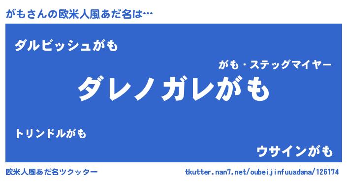 | 男性向けラノベタイトル風あだ名 | 『この素晴らしい世界にがもを!』 |