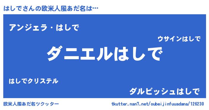 | ヒーロー風カッコイイあだ名 | 『慈愛の使者はしで』『ネオハシデ』 |