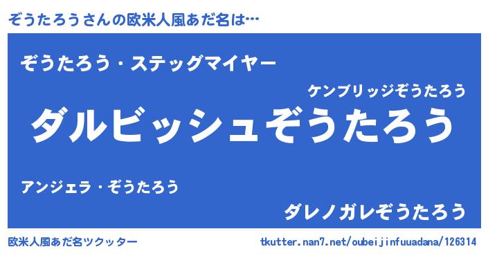 | 男性向けラノベタイトル風あだ名 | 『ぞうたろうという概念が存在しない退屈な世界 』 |